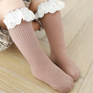 ₹399.00Baby Girls Knee High Socks, Solid Cotton and Stretchable lovely frilly Lace Long Socks.