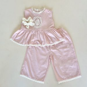 Step into timeless elegance with our captivating pink set. The delicate anglaise lace detailing on both the top and pant infuses sophistication into every stitch. A graceful flower lace design embellishes the chest, becoming the focal point of exquisite charm. Embrace the allure of this beautiful pink ensemble, where every detail radiates grace and style.