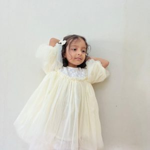 ₹1,699.00Discover our Eva Party Wear featuring unique lace puff sleeves for a charming touch. The embroidered lace on the chest adds an elegant flair. The voluminous ivory tulle skirt offers a soft and gentle finish. Perfect for weddings, formal occasions, birthdays, Christmas, and more when you want to add a touch of sophistication. The back button and zipper ensure easy wear, Dress up with confidence and style!