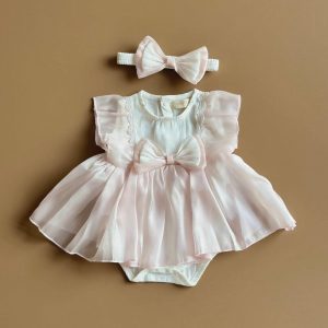 ₹1,899.00A lovely, luxurious romper made from lightweight organza, featuring matching chest corsage details for an elegant touch. Perfect for a first birthday, special occasions, or as a thoughtful gift.