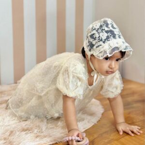 ₹1,899.00Eden Lace romper is crafted from soft, breathable cotton and adorned with a delicate floral pattern that adds charm and grace. Featuring exquisite lace embroidery layering details and a back-buttoned closure for easy dressing, it’s designed to make every moment special. Perfect for baptisms, birthdays, or any cherished occasion.