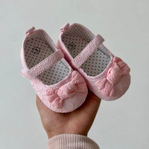 Introducing our Rosalie Anglaise Shoe - Crafted with meticulous detail, the anglaise material adds a touch of elegance, making every step a delightful experience. Elevate your baby's first steps with a touch of pink perfection !