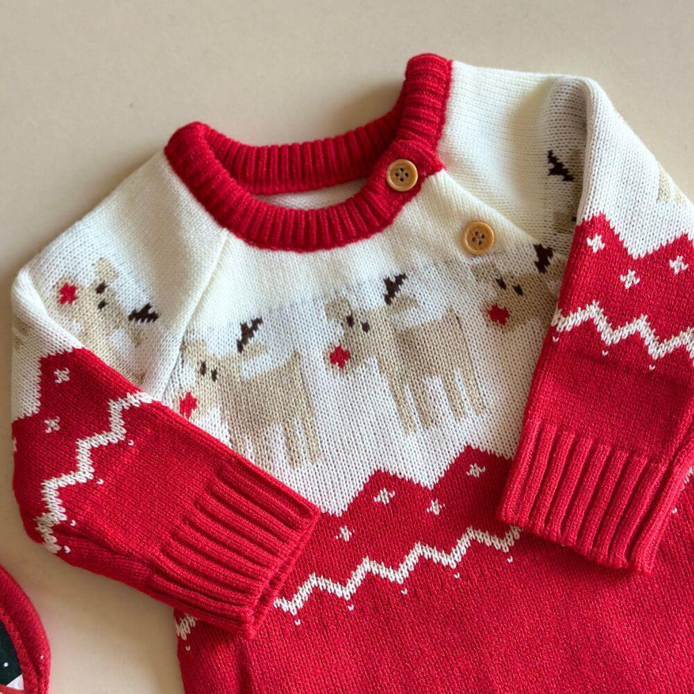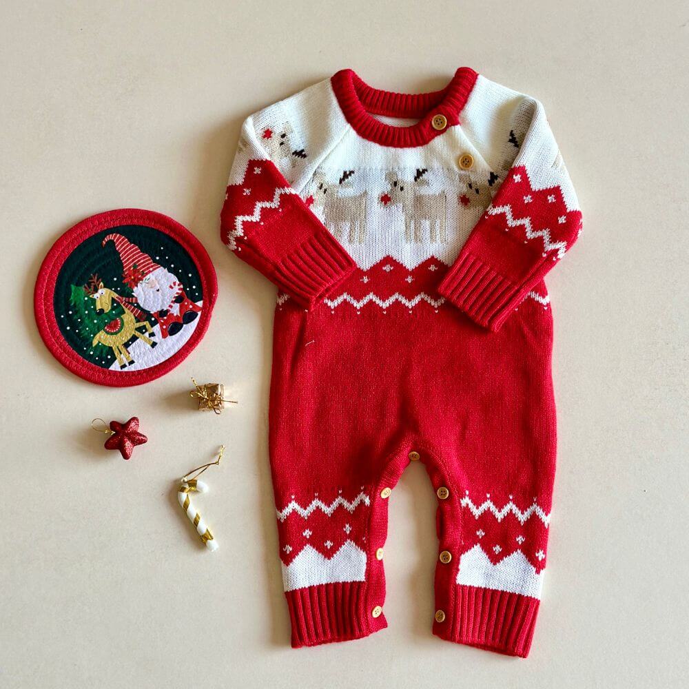 Introducing Reiny Jumpsuit featuring a sweet reindeer motif on the chest, festive detailing, and a cozy feel that’s perfect for the season. Designed with long sleeves and a soft button-neck closure, it’s the ideal outfit for holiday photos, parties, or simply cuddling up on winter days. A must-have for spreading holiday cheer!